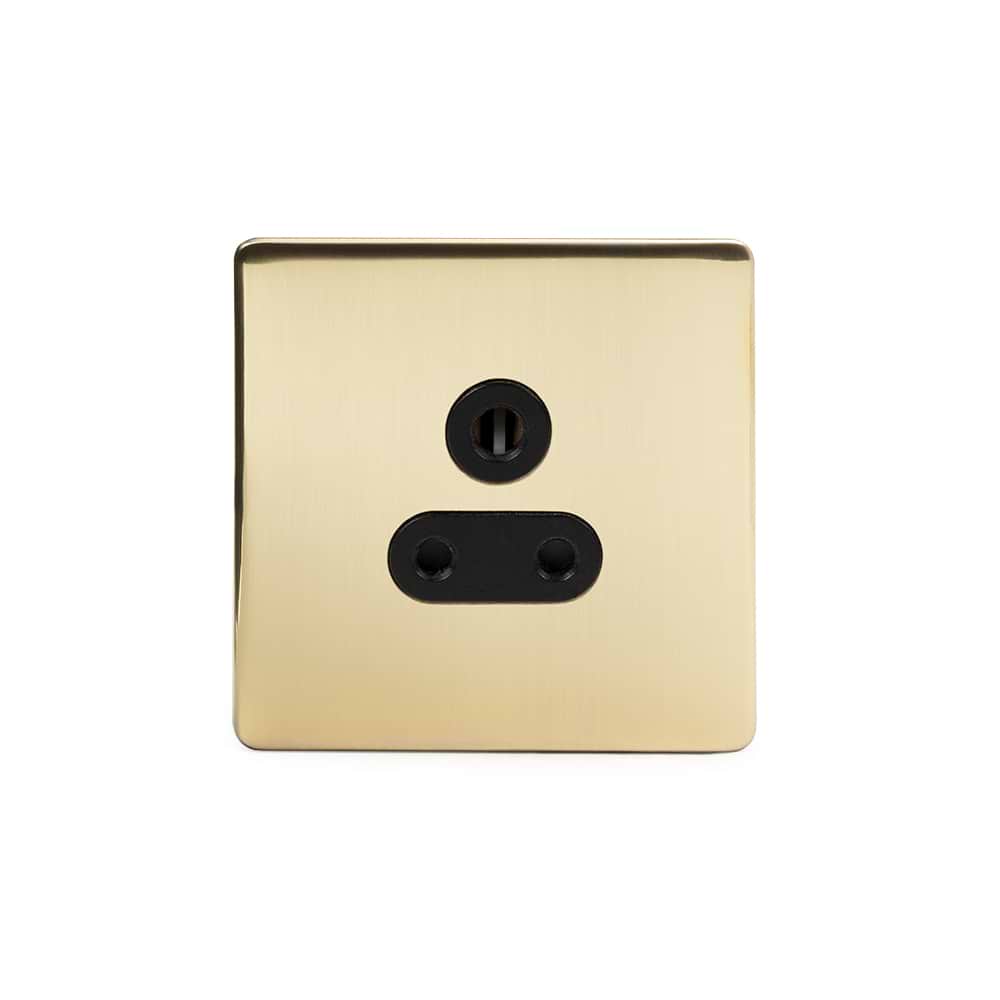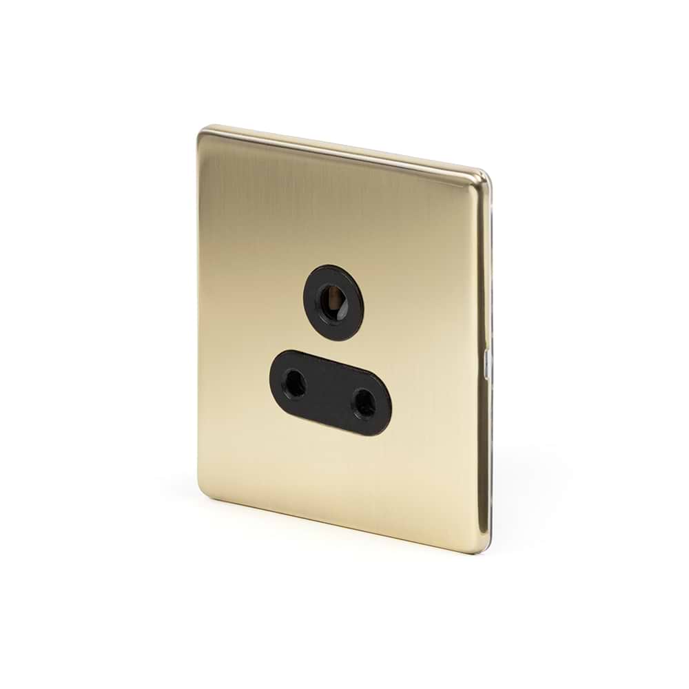 The Savoy Collection Brushed Brass 5 Amp Socket Black Ins Unswitched Screwless