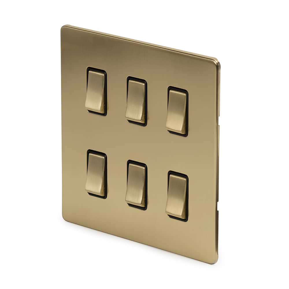 The Savoy Collection Brushed Brass 6 Gang RM Rectangular Module Grid Switch Plate