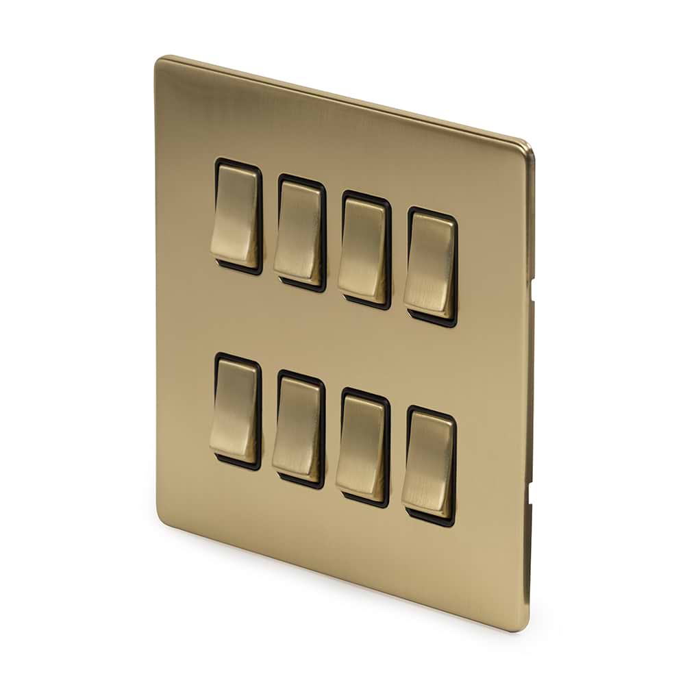 The Savoy Collection Brushed Brass 8 Gang RM Rectangular Module Grid Switch Plate