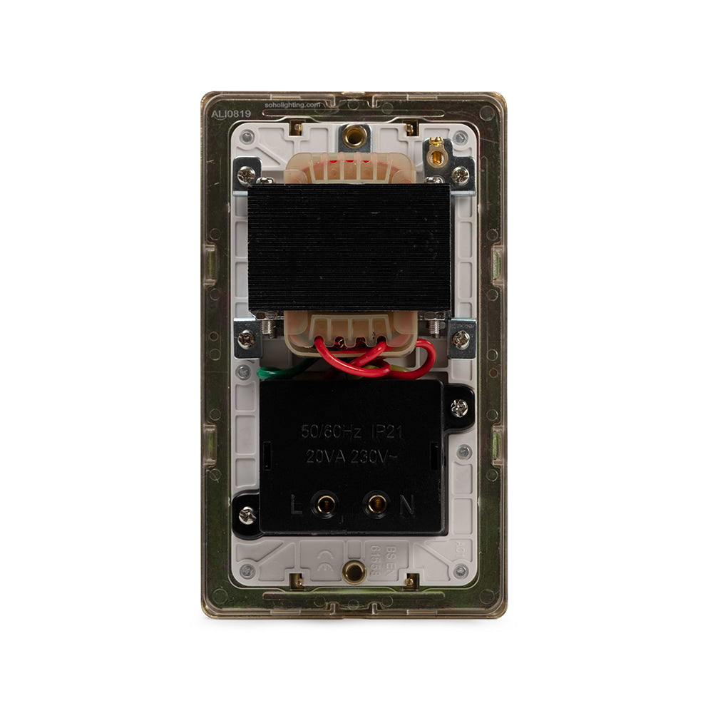This beautifully designed brushed brass with white insert Shaver Socket / Toothbrush Socket 230/115V Plate from Soho Lighting carries the Savoy collection's distinctive looks and elegant screwless finish, providing a warmer tone than typical new polished brass switches and sockets and has the added benefit of hiding fingerprints and small blemishes.