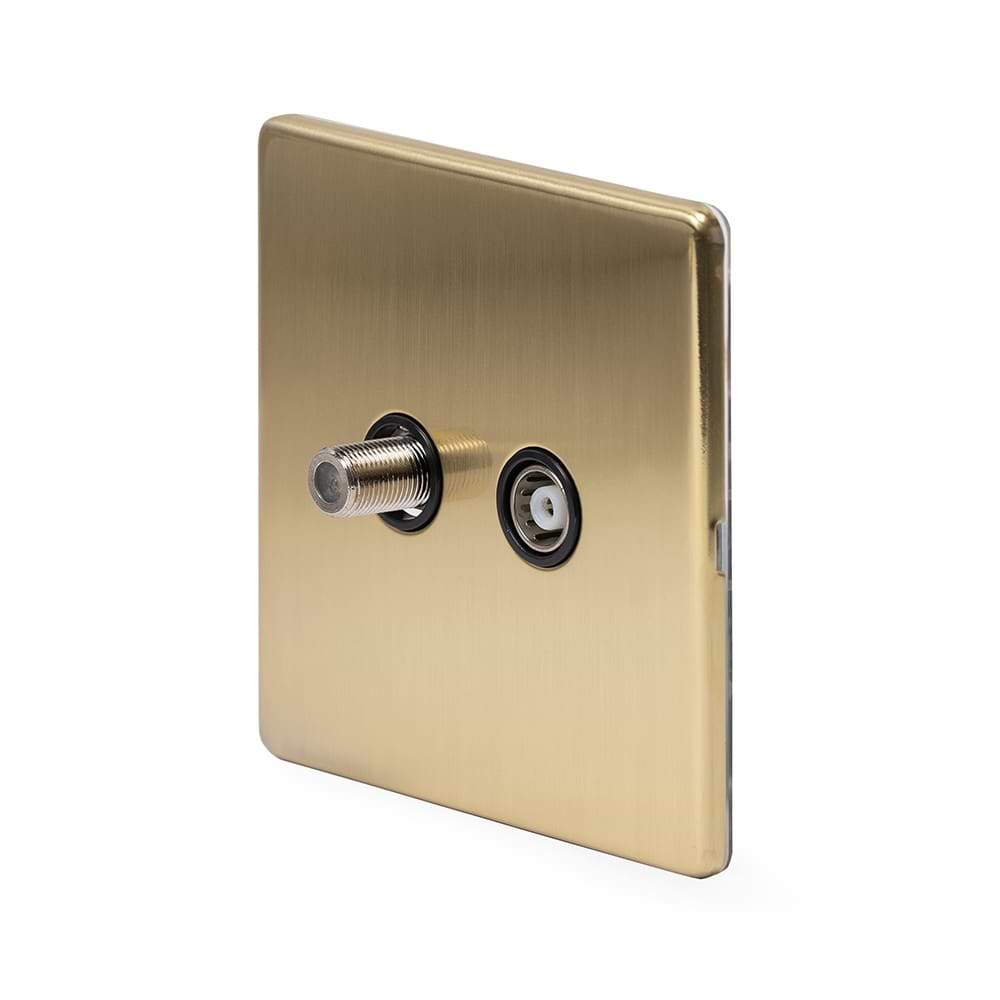 The Savoy Collection Brushed Brass TV+ Satellite Socket Black Insert Screwless