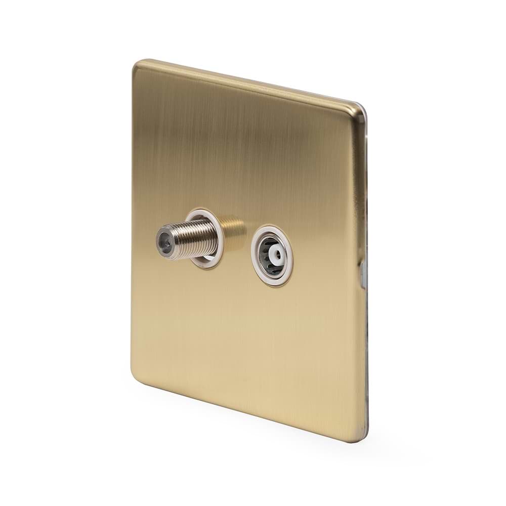 The Savoy Collection Brushed Brass TV+ Satellite Socket Wht Ins Screwless