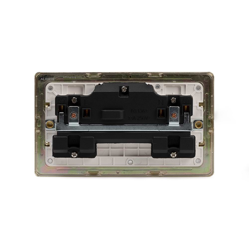 The finish of this brushed brass double socket is a popular choice for period styled and statement properties and the warm brass tones and subtle aging lend an instant timelessness and elegant authenticity to any project. It also blends seamlessly with brick and natural stone.