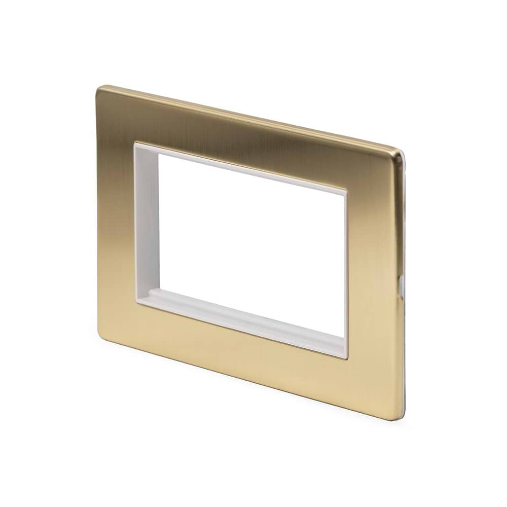 The Savoy Collection Brushed Brass White Insert 4 x25mm EM-Euro Module Faceplate