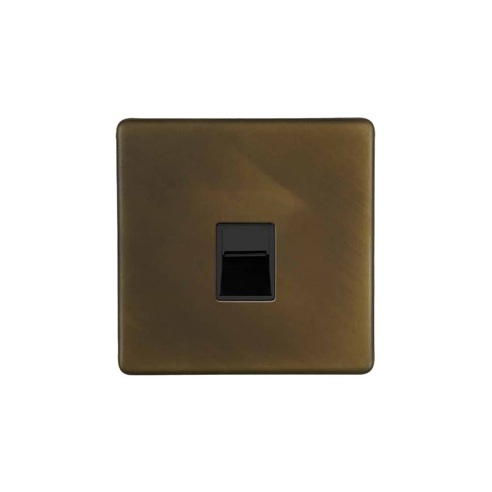 This Vintage Brass Traditional Plate 1 Gang Telephone Secondary (Slave) Socket,BT has a vintage brass finish that has been carefully matched to original Georgian and Victorian brass works such as door handles and cabinetry details, giving a faithful representation of heavily oxidised, un-polished, timeworn brass, with a rich sumptuous dark matt patina.This means that no two plates look exactly the same, adding to their authentic look.