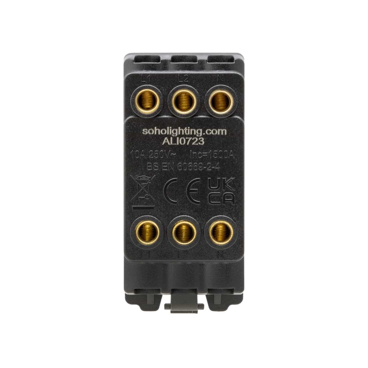 This Vintage Brass 3-pole fan isolator grid switch can be used for isolating extractor fans in bathrooms/wet rooms. The fan is isolated on the switch, live and neutral simultaneously. This RM-Grid Switch Module is compatible with both the RM and Dual (RM+CM). This allows you to make an extensive range of custom plates such as rocker and dimmer switch combinations, to fulfil almost every conceivable lighting or isolation switch requirement for your project. This RM module is not compatible with CM, EM, LT1, LT2 or LT3 Plates.