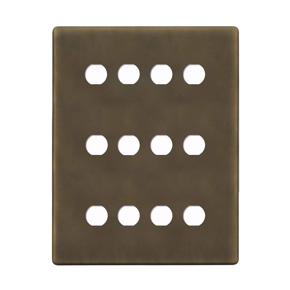 This Vintage Brass Traditional Plate 12 Gang CM Circular Module Grid Switch Plate has a vintage brass finish that has been carefully matched to original Georgian and Victorian brass works such as door handles and cabinetry details, giving a faithful representation of heavily oxidised, un-polished, timeworn brass, with a rich sumptuous dark matt patina.This means that no two plates look exactly the same, adding to their authentic look.