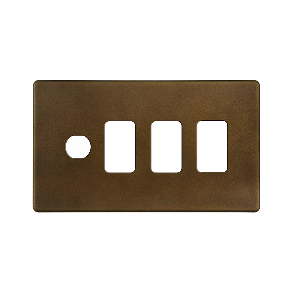 This 4 Gang 3RM+1CM Dual Module Grid Plate comes with a back frame/yoke and is compatible with the extensive range of RM and CM switch modules we retail. This highly adaptable and original system allows you to make custom plates mixing both rectangular rocker and circular toggle/dimmer modules to make a perfect plate. Popular combinations include combined rocker/dimmer plates for light switches, though thousands of unique combinations of switch and isolation plates are possible, each delivering a seamless finish for your project. This Dual (RM+CM) Grid Plate is not compatible with EM, LT1, LT2 or LT3 modules.The luxurious Lighting, low-profile classic plate delivers an aged look and charm that is the perfect complement for traditional and period home styling. The perfect timeless appearance and subtly brushed finish provide a rich warm tone and the plate readily obscures fingerprints and small blemishes reducing the need for regular cleaning and maintenance.We love switches and sockets, not only for their hand finished robust build quality, but also for the extensive range and choice of products available. This ensures you never have to compromise looks for function or performance on your project.