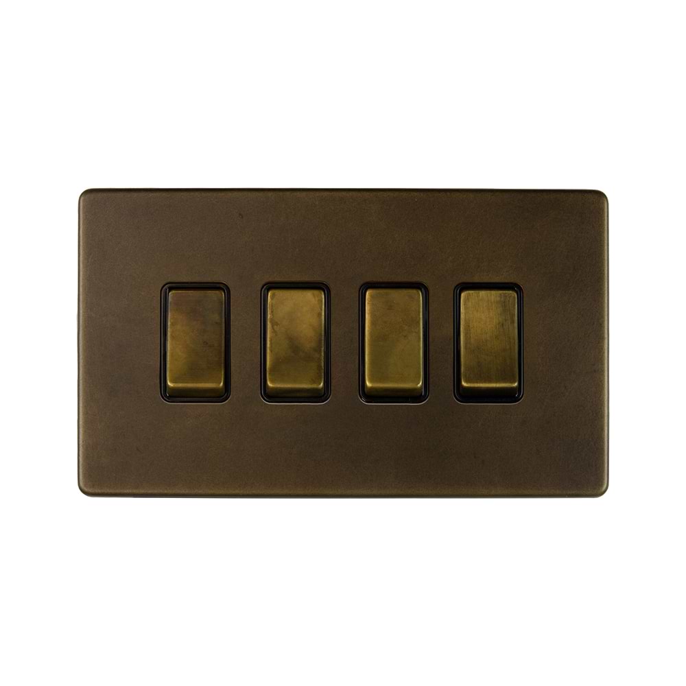 The Westminster Collection Vintage Brass 4 Gang Switch With 1 Intermediate (3 x 2 Way Switch with 1 Intermediate)