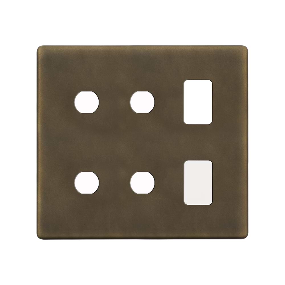 This 6 Gang 2RM+4CM Dual Module Grid Plate comes with a back frame/yoke and is compatible with the extensive range of RM and CM switch modules we retail. This highly adaptable and original system allows you to make custom plates mixing both rectangular rocker and circular toggle/dimmer modules to make a perfect plate. Popular combinations include combined rocker/dimmer plates for light switches, though thousands of unique combinations of switch and isolation plates are possible, each delivering a seamless finish for your project. This Dual (RM+CM) Grid Plate is not compatible with EM, LT1, LT2 or LT3 modules.The luxurious Lighting, low-profile classic plate delivers an aged look and charm that is the perfect complement for traditional and period home styling. The perfect timeless appearance and subtly brushed finish provide a rich warm tone and the plate readily obscures fingerprints and small blemishes reducing the need for regular cleaning and maintenance.We love switches and sockets, not only for their hand finished robust build quality, but also for the extensive range and choice of products available. This ensures you never have to compromise looks for function or performance on your project.