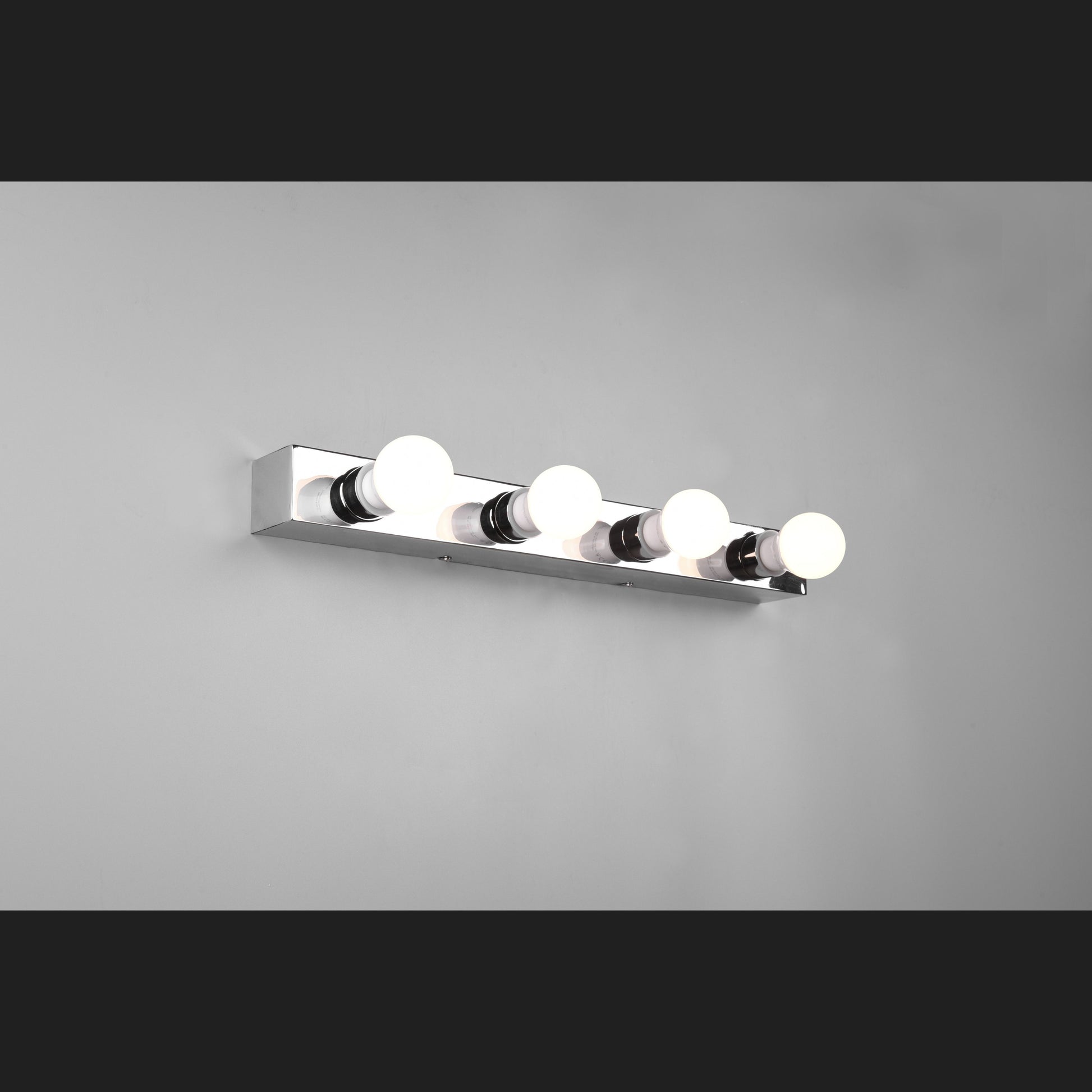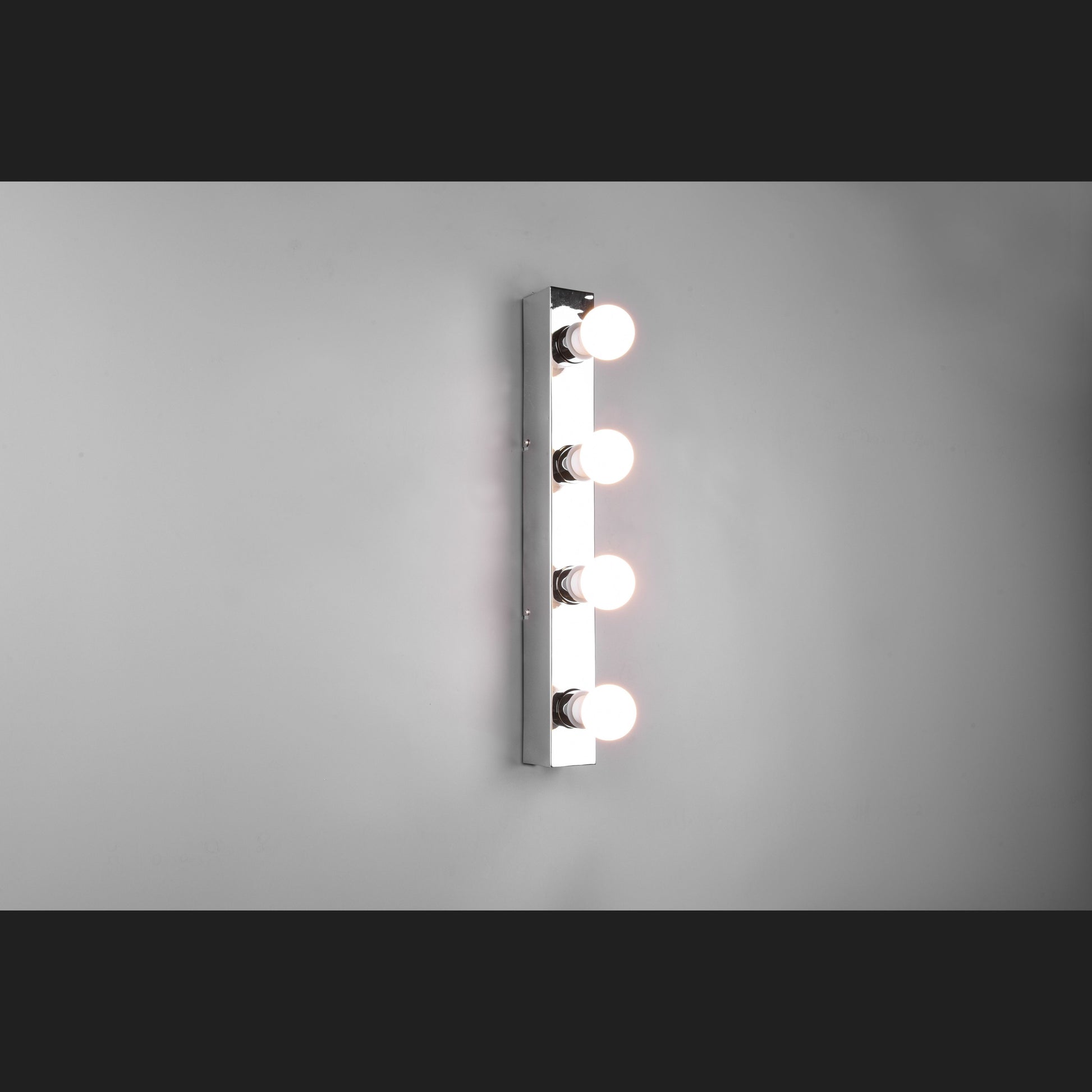 With its vintage design, the THEATRO retro wall light creates a very special atmosphere and lets you immerse yourself in the world of Hollywood. Feel like a star and place the light above your bathroom mirror. Thanks to the IP44 classification, the wall light is protected against splashing water and is particularly suitable for film-ready lighting conditions in damp rooms. Thanks to the simple chrome colour scheme, the light harmonises perfectly with modern furnishing concepts and can be easily combined with other colours and furnishing styles. For energy-saving lighting, it is recommended to use an LED illuminant. These are an optimal alternative to conventional halogen lamps and stand for a high quality of light and energy savings of up to 80%. In addition, LED lamps help you benefit from a long service life, low heat generation and at the same time protect the environment.
