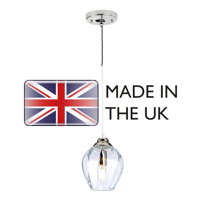 With its clear, twisted mouth-blown glass shade, the Tiber packs a visual punch far above its compact dimensions. Working well as a single pendant or clustered in groups or linear arrangements, the Tiber adds elegance and charm to both residential and contract interiors. Made in England.