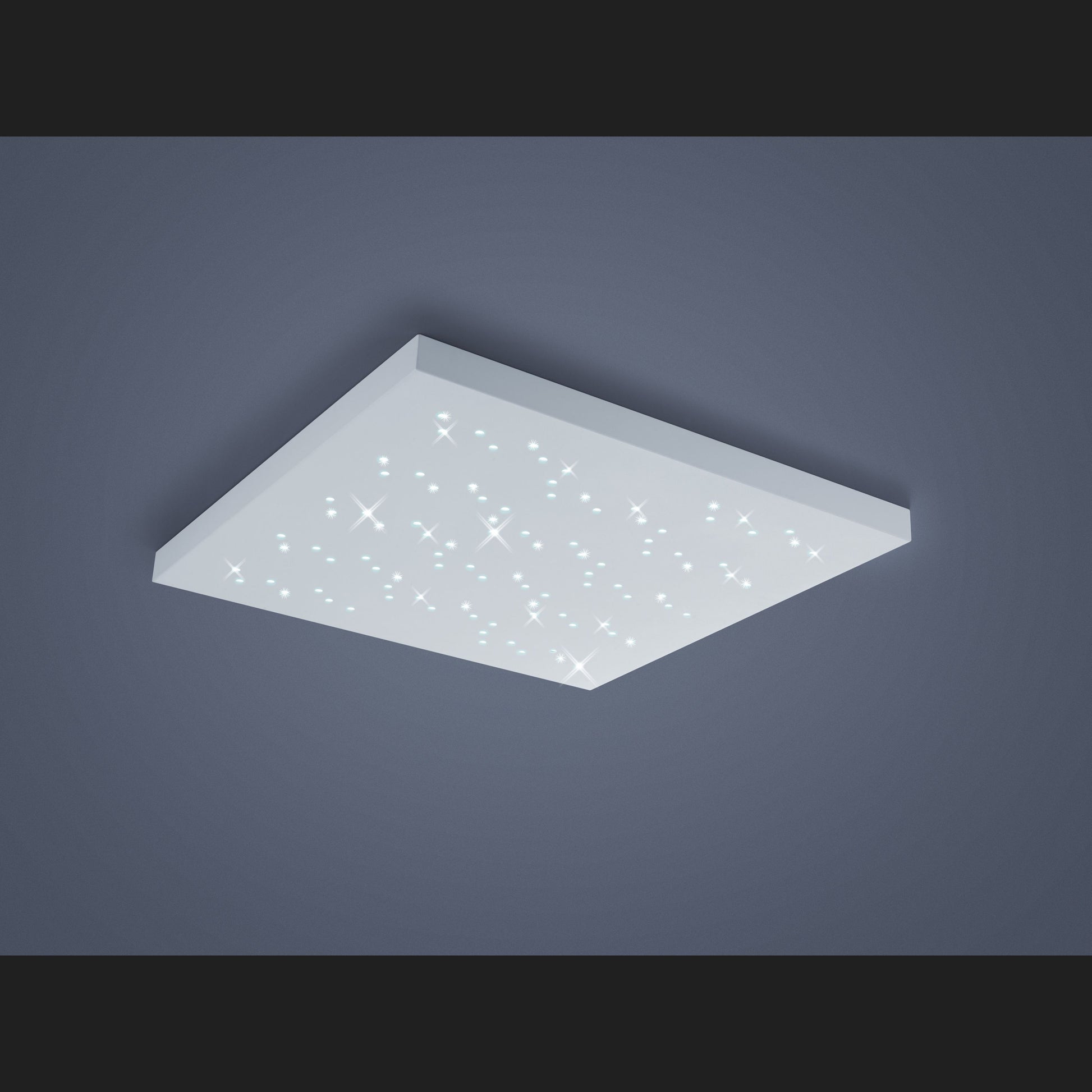 The TITUS ceiling light impresses with a special kind of lighting magic. The design and construction of the luminaire creates the association of a starry sky and conjures up atmospheric, soft lighting effects in your living space. With 98 points of light, you can create decorative accents and at the same time realise a light installation that will attract everyone's attention. In addition, both the light colour between 3000 and 6000 Kelvin and the light intensity can be continuously adjusted to your requirements using the remote control. With a size of 75 x 75 cm, you can make your living spaces sparkle. Thanks to the matt white colour scheme, the light can be seamlessly integrated into your interior. In addition, the luminaire features modern LED technology, which is characterised by high light quality and energy efficiency. Compared to conventional halogen lamps, up to 80% of energy costs can be saved. In addition, LED light sources have a long service life, produce less heat and protect the environment.