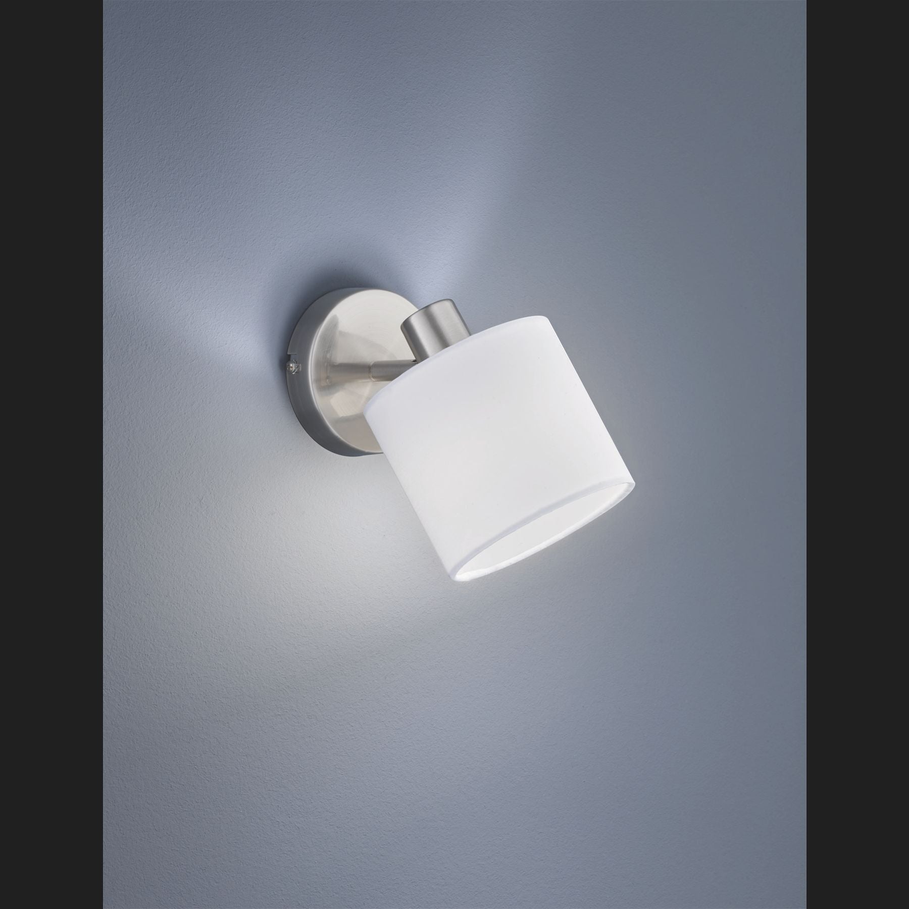 The spotlights in the TOMMY range provide cosy lighting, as textile shades increase the comfort factor and conjure up a cosy ambience. At the same time, the clear shapes conjure up a modern and simple style that can be used and combined in a variety of ways. The single-flame spotlight can be used as a supplementary or orientation light and can be used to highlight individual areas. The swivelling head has a diameter of 12 cm and can be precisely aligned. The light is made of metal in matt nickel and is complemented by a white fabric shade. The combination creates modern and stylish lighting accents and gives living rooms a pleasant feel-good effect. For energy-saving lighting, it is recommended to use an LED illuminant. These are an optimal alternative to conventional halogen lamps and stand for a high quality of light and energy savings of up to 80%. In addition, LED lamps help you benefit from a long service life, low heat generation and at the same time protect the environment.