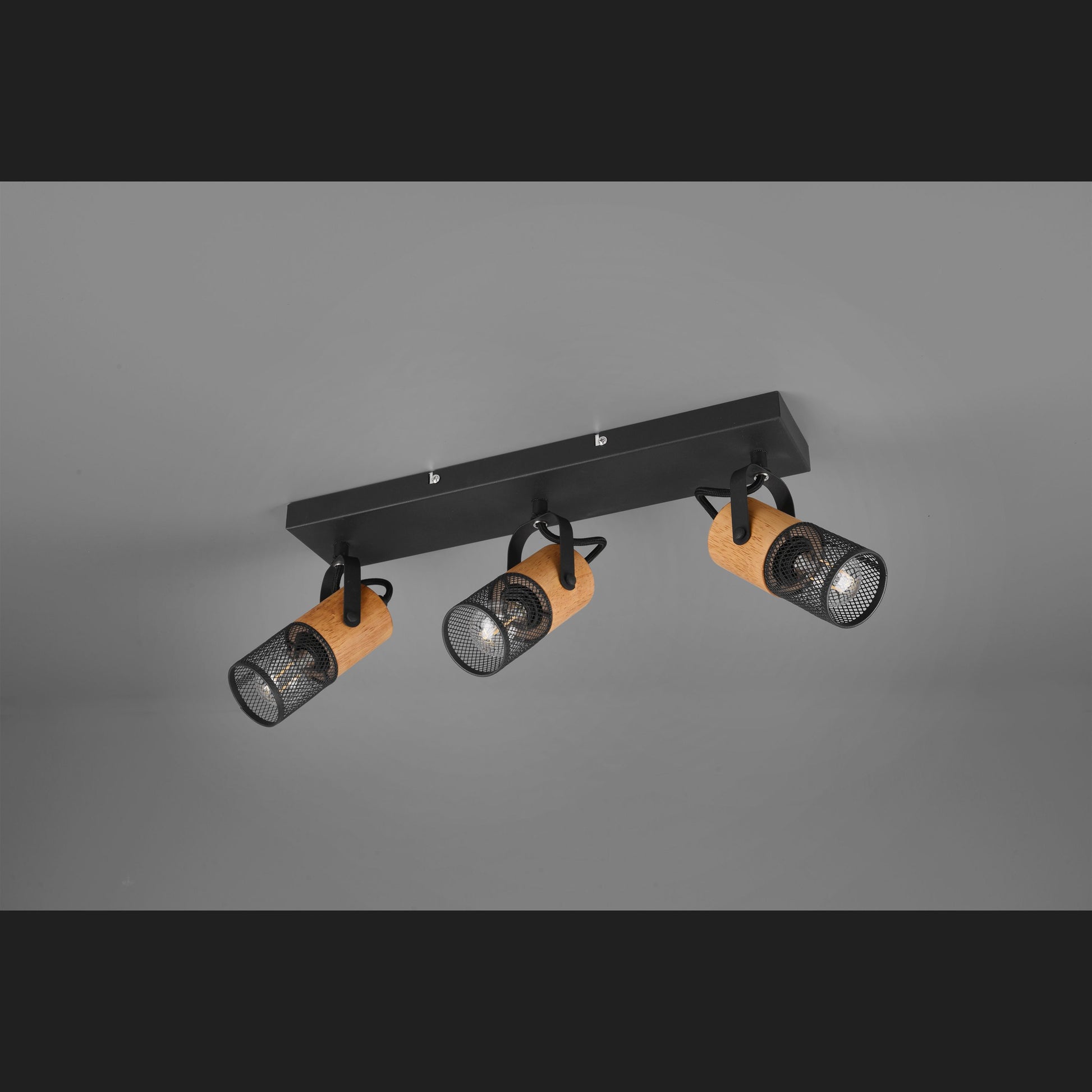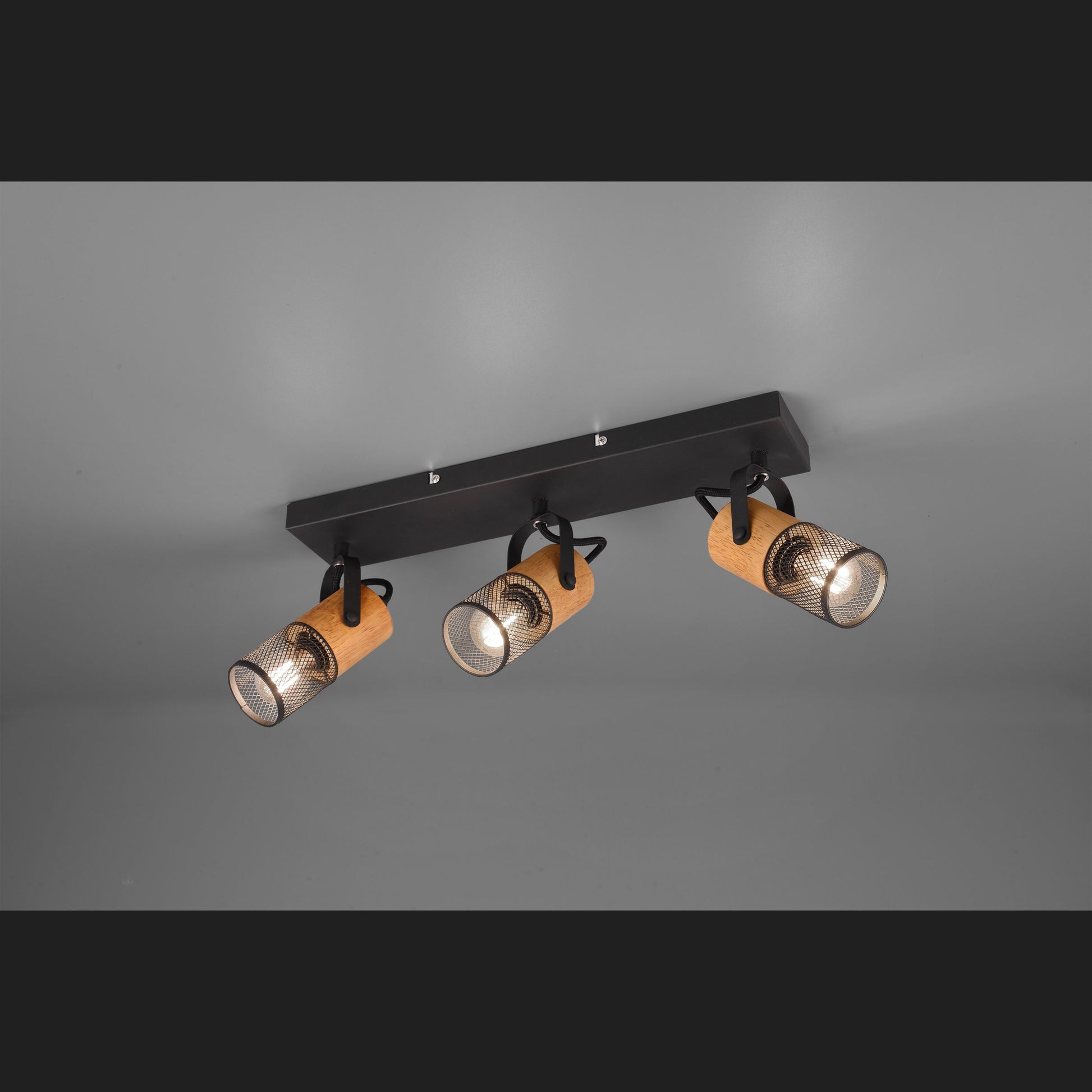 The modern mix of metal and wood looks timeless and is absolutely on trend. The combination with natural materials has become an integral part of modern living spaces and also creates a cosy ambience. The TOSH 3 spotlight is the ideal choice for creating a perfect lighting result in smaller living spaces. The individual spots can be individually aligned and are therefore also suitable for illuminating and highlighting specific areas. Metal in matt black together with the wooden elements can be found in modern and minimalist furnishing styles. For energy-saving lighting, it is recommended to use an LED illuminant. These are an optimal alternative to conventional halogen lamps and stand for a high quality of light and energy savings of up to 80%. In addition, LED lamps help you benefit from a long service life, low heat generation and at the same time protect the environment.
