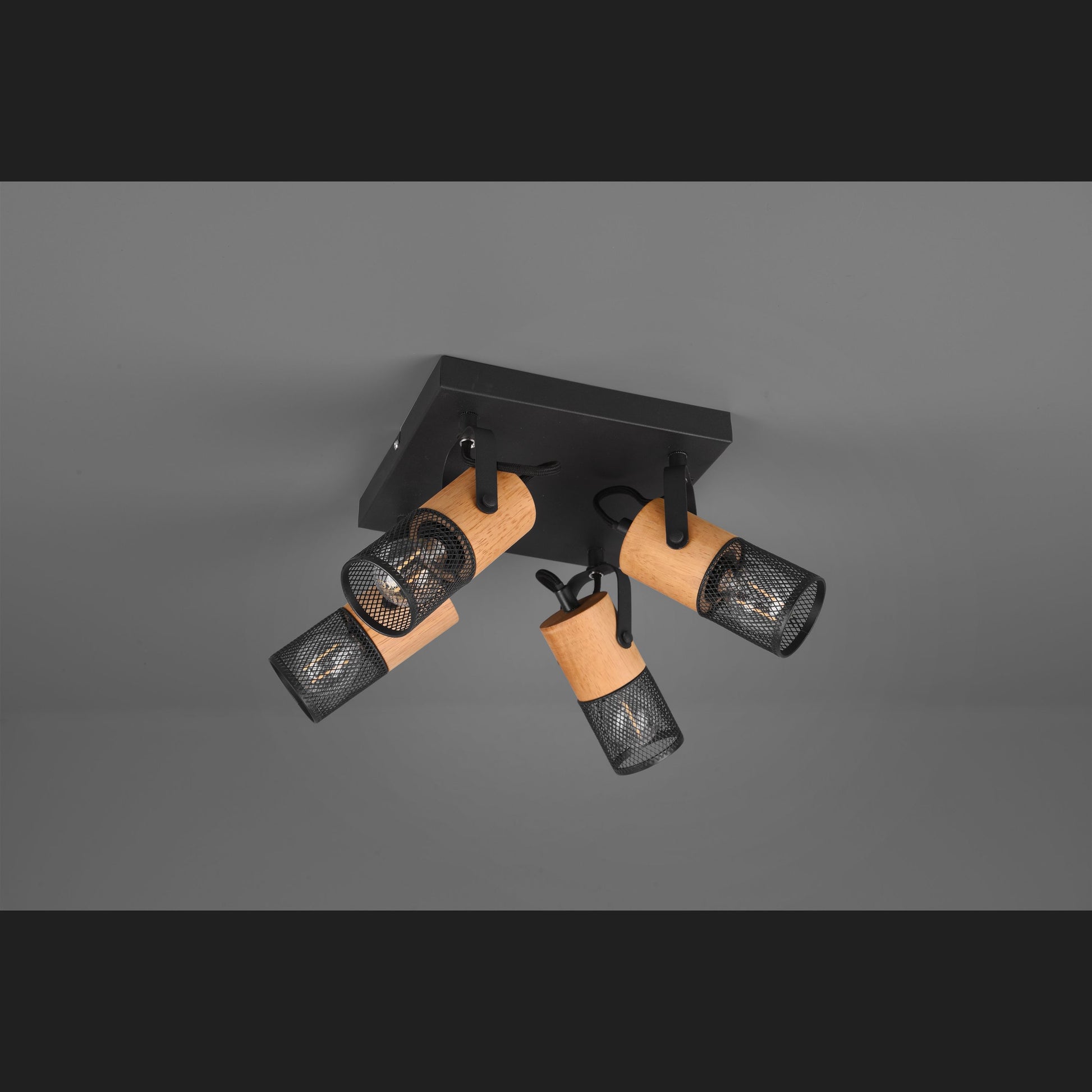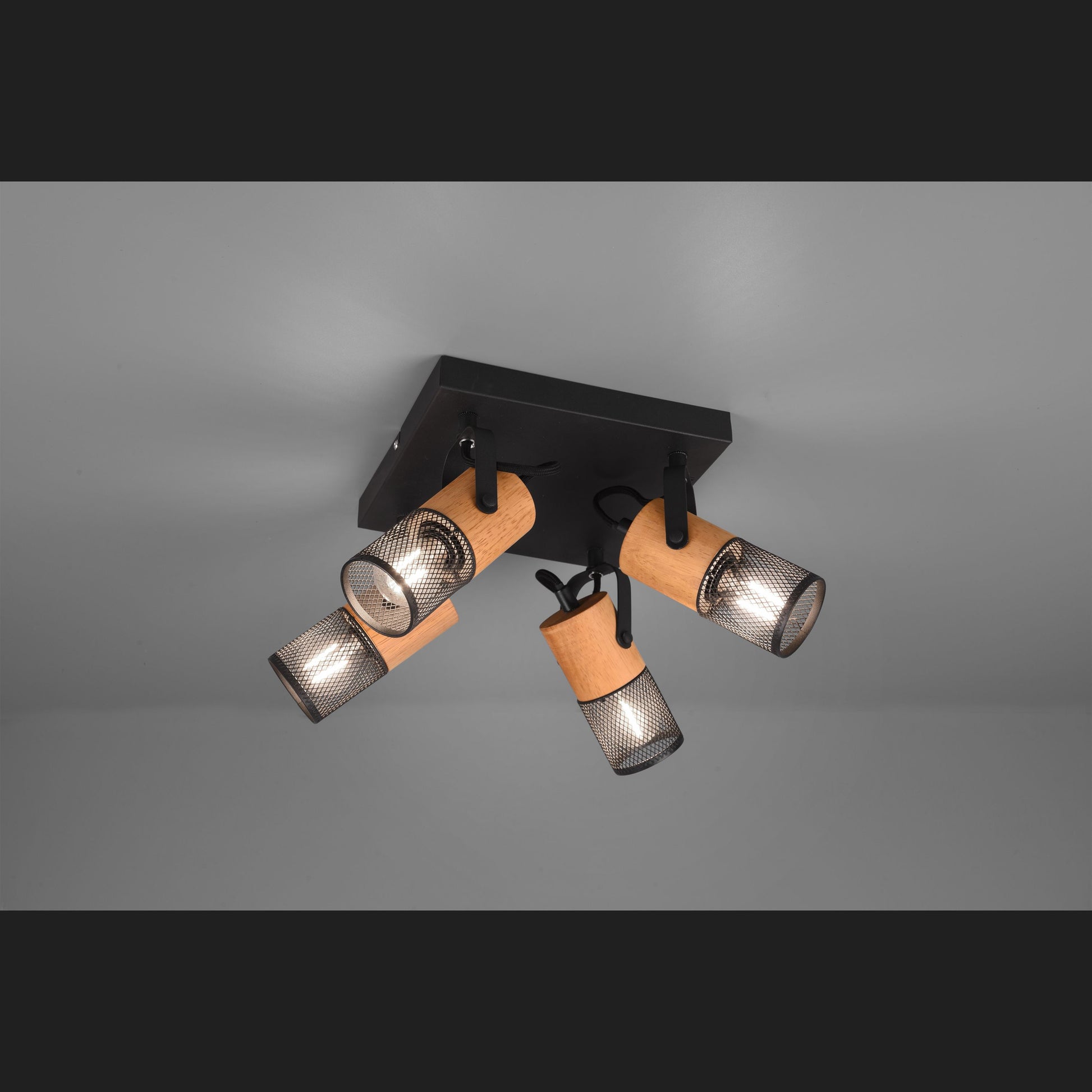 The modern mix of metal and wood looks timeless and is absolutely on trend. The combination with natural materials has become an integral part of modern living spaces and also creates a cosy ambience. The 4-spot TOSH is therefore the ideal choice for creating the perfect lighting result in living spaces. The individual spots can be individually aligned and are therefore also suitable for illuminating specific areas. Metal in matt black together with the wooden elements can be found in modern and minimalist furnishing styles. For energy-saving lighting, it is recommended to use an LED illuminant. These are an optimal alternative to conventional halogen lamps and stand for a high quality of light and energy savings of up to 80%. In addition, LED lamps help you benefit from a long service life, low heat generation and at the same time protect the environment.