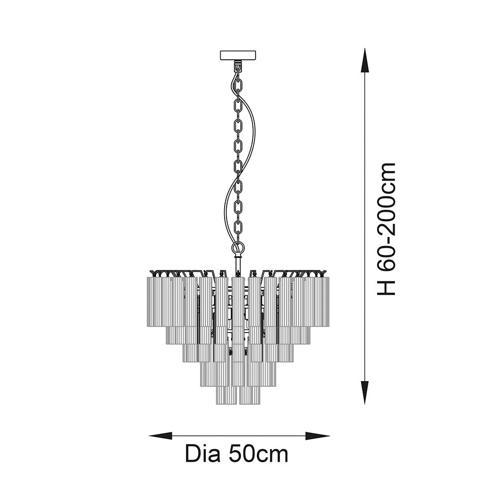- Striking tiered tubular glass chandelier