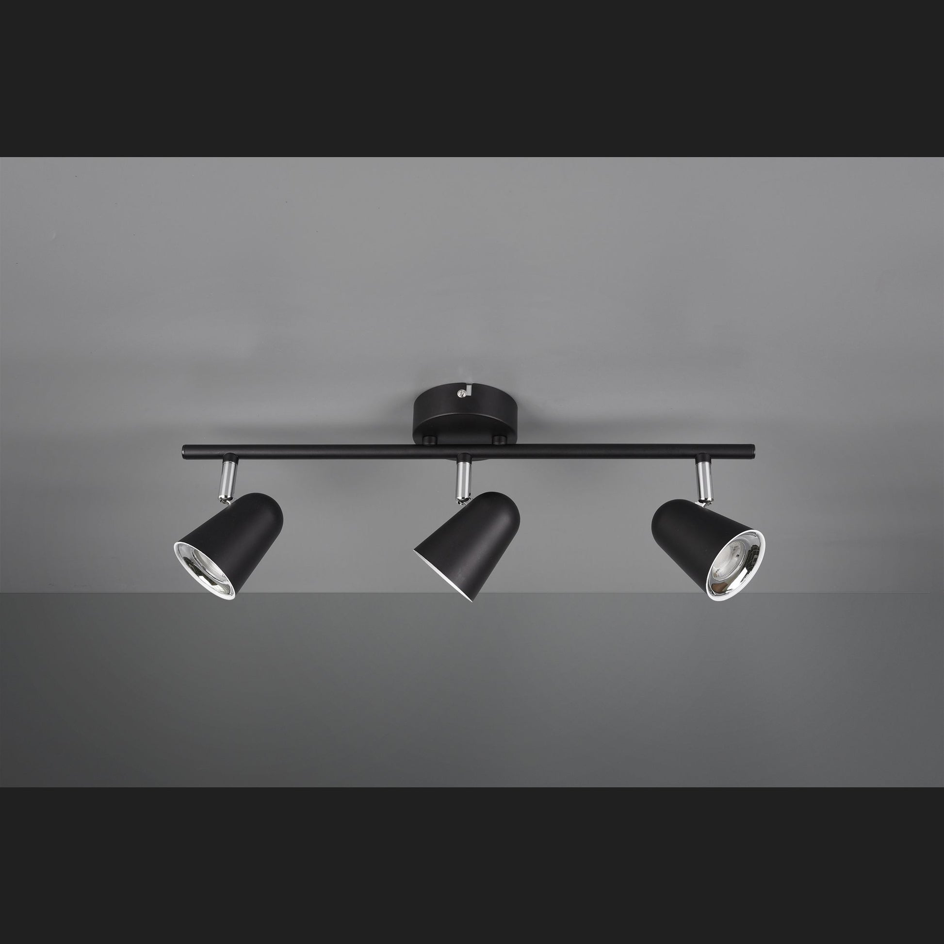 Thanks to its clear design, the three-lamp TOULOUSE spotlight tastefully enhances a wide variety of rooms and furnishing styles. Even after this luminaire has been permanently installed, you can still flexibly direct the light beam in the direction you want. This makes the luminaire particularly versatile. Thanks to the timeless design in matt black, the light can be seamlessly integrated into all furnishing styles. In addition, the luminaire features modern LED technology, which is characterised by high light quality and energy efficiency. Compared to conventional halogen lamps, up to 80% of energy costs can be saved. In addition, LED light sources have a long service life, produce less heat and protect the environment.