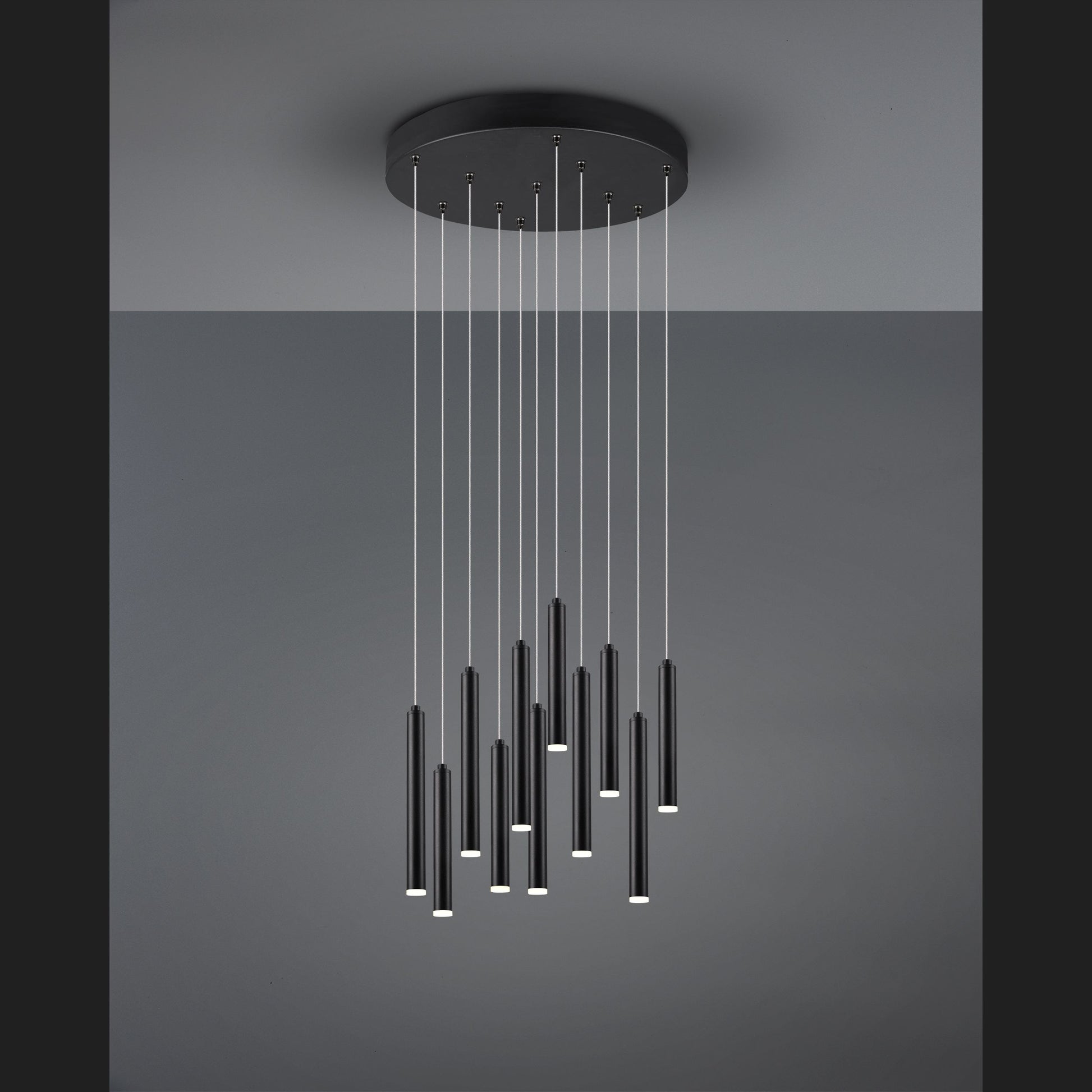 The stylish design of the pendant light makes the TUBULAR an absolute eye-catcher. As targeted lighting above the dining table, the luminaire is particularly effective and ensures optimum lighting conditions. An integrated SWITCH dimmer allows the brightness to be adjusted from 100% to 50% and 25% using a conventional light switch. The 11-light pendant luminaire has a maximum height of 150cm. The individual light sources vary in length from 22 to 36 cm and can be shortened independently of each other to create a customised look. The pendant in matt black can be wonderfully integrated into modern living spaces and creates a pleasant atmosphere. In addition, the luminaire features modern LED technology, which is characterised by high light quality and energy efficiency. Compared to conventional halogen lamps, up to 80% of energy costs can be saved. In addition, LED light sources have a long service life, produce less heat and protect the environment.