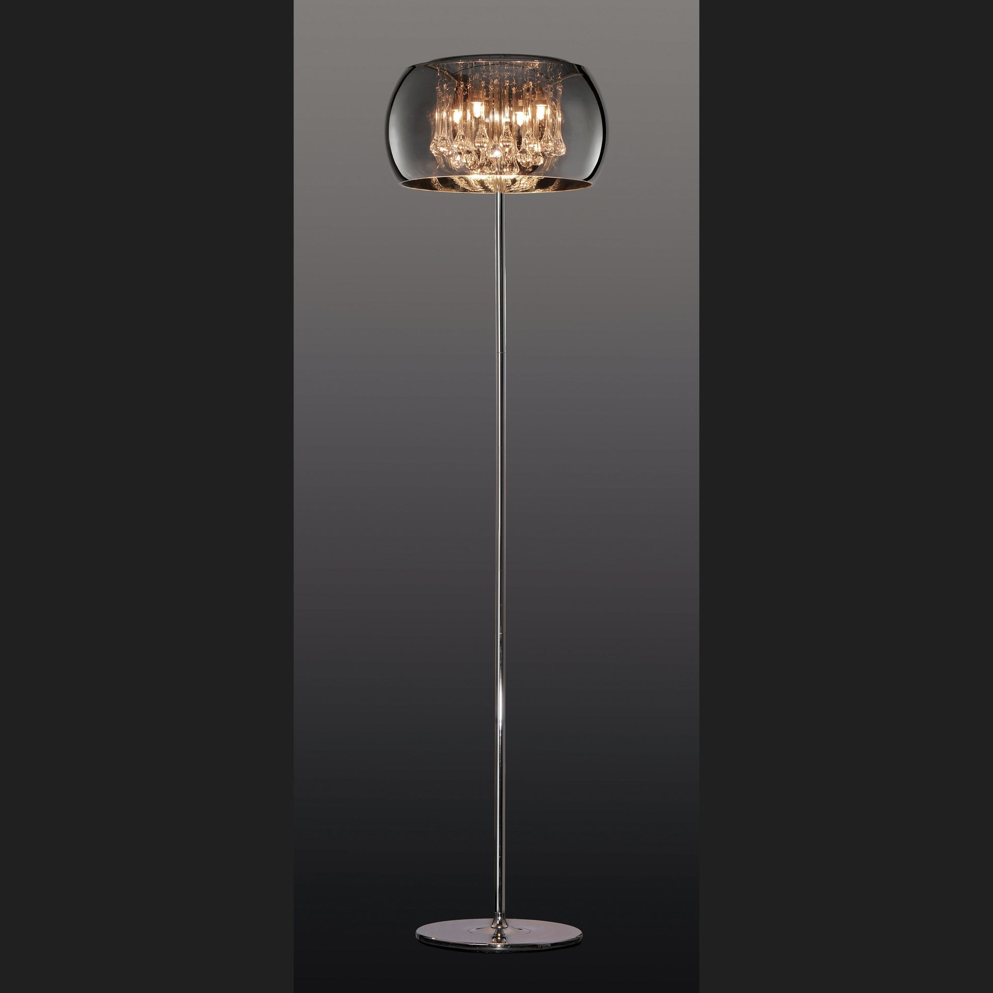 Characteristic luminaires such as those in the VAPORE range lend a room elegance and individual charm. When unlit, the chrome-plated glass shade takes centre stage, but as soon as the VAPORE light is switched on, it shines in new splendour. When illuminated, the otherwise mirrored glass becomes transparent and the integrated glass drops become visible. The contrast of material, colour and playful details makes the luminaire unique and gives the room a warm and cosy atmosphere. The floor lamp has a height of 158 cm and a diameter of 40 cm. The three G9 bulbs each emit 624 lumens at 42 watts and a warm white light colour of 2800 Kelvin.