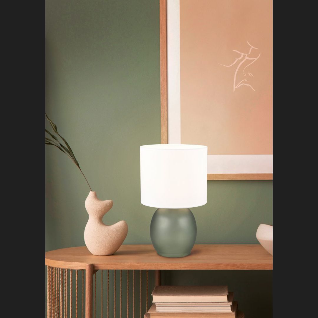 The lights in the VELA range blend beautifully into both modern and classic interiors in matching colours. The elegant fabric shade of the table lamp, combined with the elegantly rounded glass base, creates a harmonious overall look. The special colour combination of white and green skilfully rounds off the design of the light. The use of LED light sources is recommended for energy-saving lighting. These are an ideal alternative to conventional halogen light sources and offer high light quality and energy savings of up to 80%. With LED light sources, you also benefit from a long service life and low heat generation while protecting the environment.