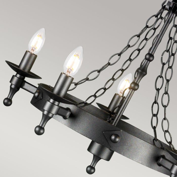 The medieval styled Warwick range is heavy and hand crafted, designed to replicate the old wrought iron fittings of bygone days. Manufactured exclusively by Elstead in the UK. Made in England.