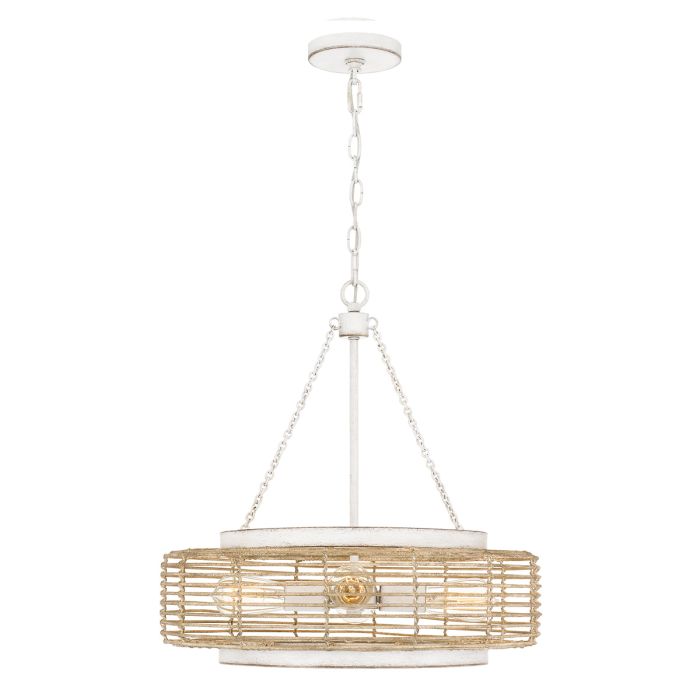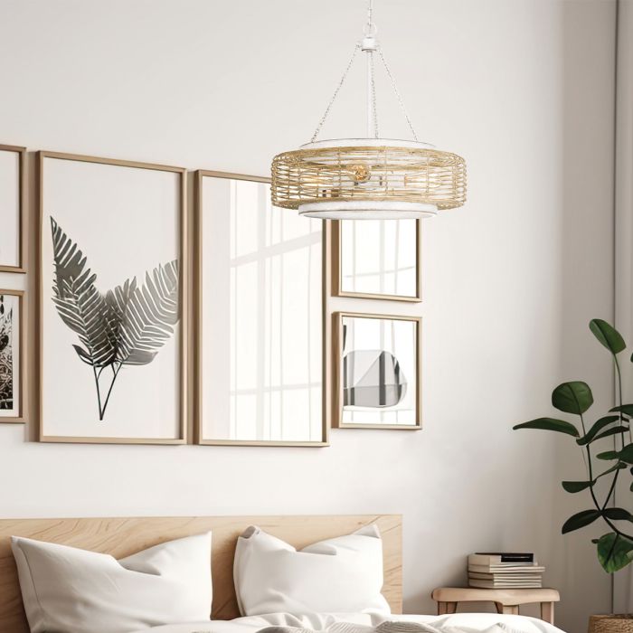 The Waylon pendant delivers on easygoing, beachy style. Pairing wood elements with an antique white, this piece draws influence from coastal and bohemian design schemes alike. Use it in a bedroom to create a instantly dreamy, romantic atmosphere.