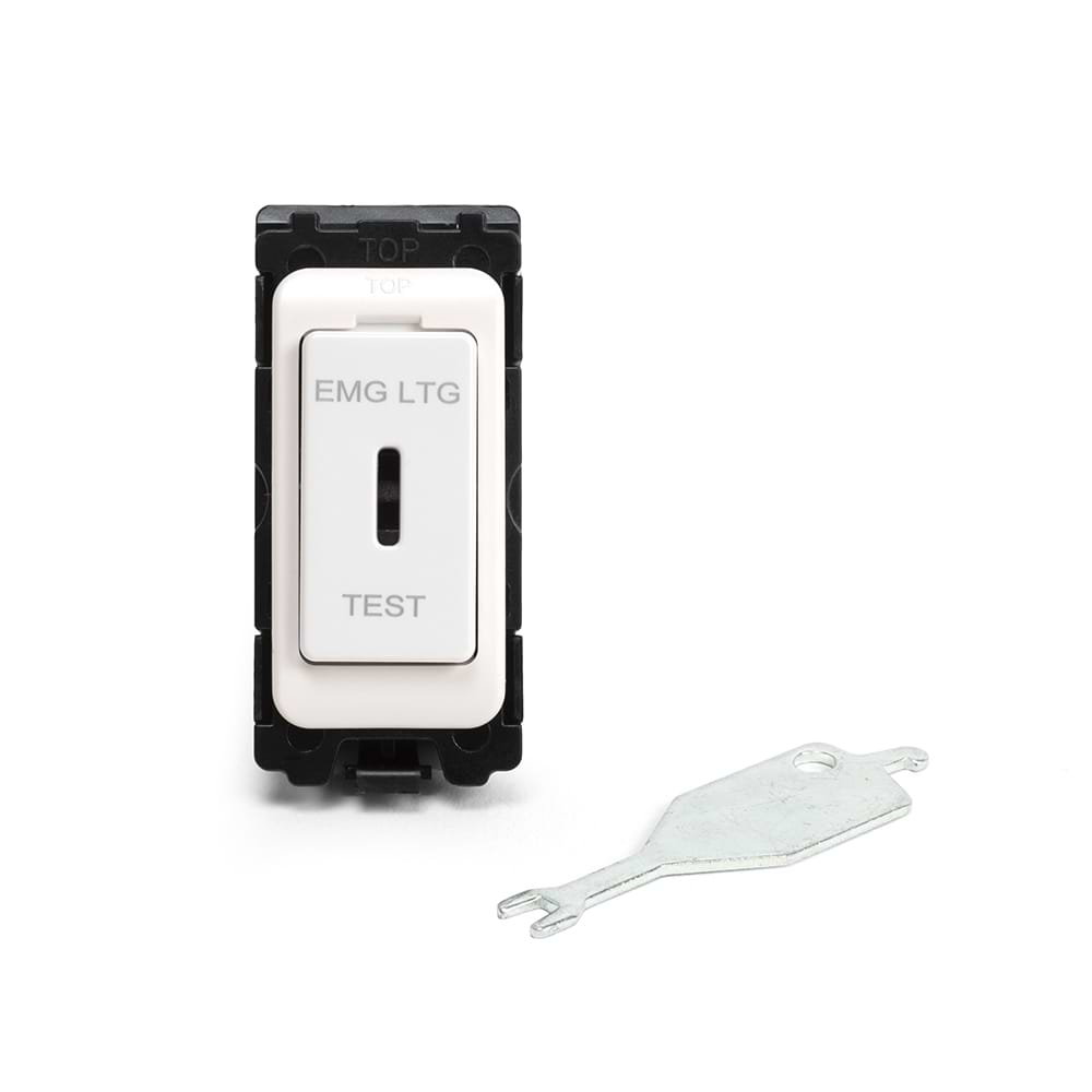 This 20A 2 Way Single Pole key switch module engraved 'EMG LTG TEST' is used for isolating/testing a supply in a commercial situation when you have emergency lights. If you use the key, it replicates the power being dropped off.This White RM Module from the is compatible with both our RM and Dual (RM+CM) Grid Plates. With these you can create a wide range of bespoke plates such as dimmer and rocker switch combinations, to fulfil almost every imaginable lighting or isolation switch need for your home. This RM module is not compatible with CM, EM, LT1, LT2 or LT3 Plates.
