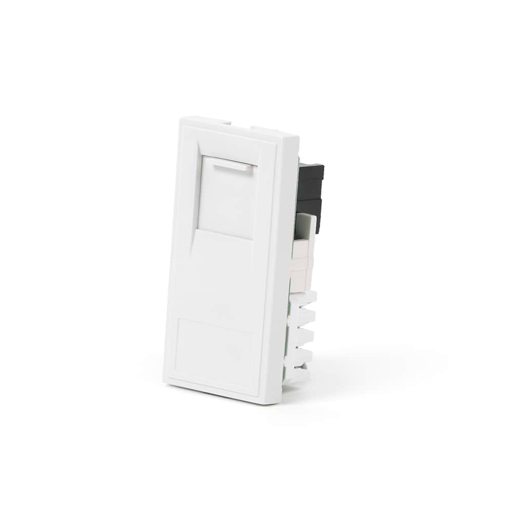 Our 25mm x 50mm RJ45 CAT5 Ethernet socket is available in a black or white finish. This EM Module is compatible with our Euro Module EM Floor and Wall Plates. This enables you to build bespoke socket or multimedia plates, combining connection outlets such as CAT 5/6, BT, Satellite, USB or HDMI etc. onto a single plate. This EM module is not compatible with RM, CM, (RM+CM), EM, LT1, LT2 or LT3 Plates.