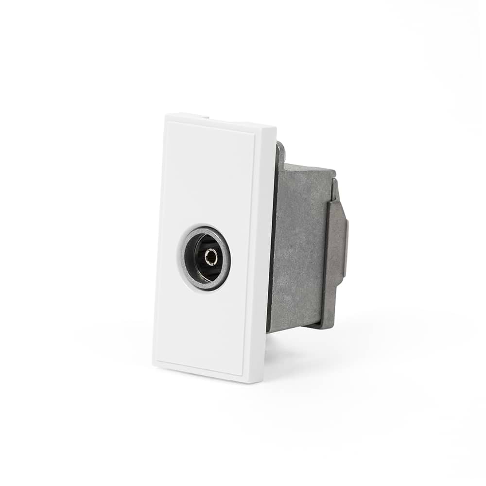 Our 25mm x 50mm TV female (sheathed) Euro Module Outlet is available in a black or white finish and accepts a male coaxial TV ariel cable plug. This EM Module is compatible with our Euro Module EM Floor and Wall Plates. This enables you to build bespoke socket or multimedia plates, combining connection outlets such as CAT 5/6, BT, Satellite, USB or HDMI etc. onto a single plate. This EM module is not compatible with RM, CM, (RM+CM), EM, LT1, LT2 or LT3 Plates.