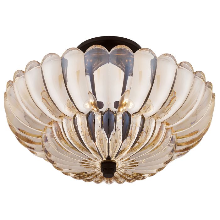 Featuring a beautifully scalloped shade, the Whitecap semi-Flush light is elegant and sophisticated. The amber glass flows beautifully upward towards the canopy. Whitecap is finished in a rich mottled cocoa finish, providing depth and contrast to the shimmering glass. Hang this beautiful ceiling light in any hallway, foyer, home office, bathroom, or kitchen for instant style.