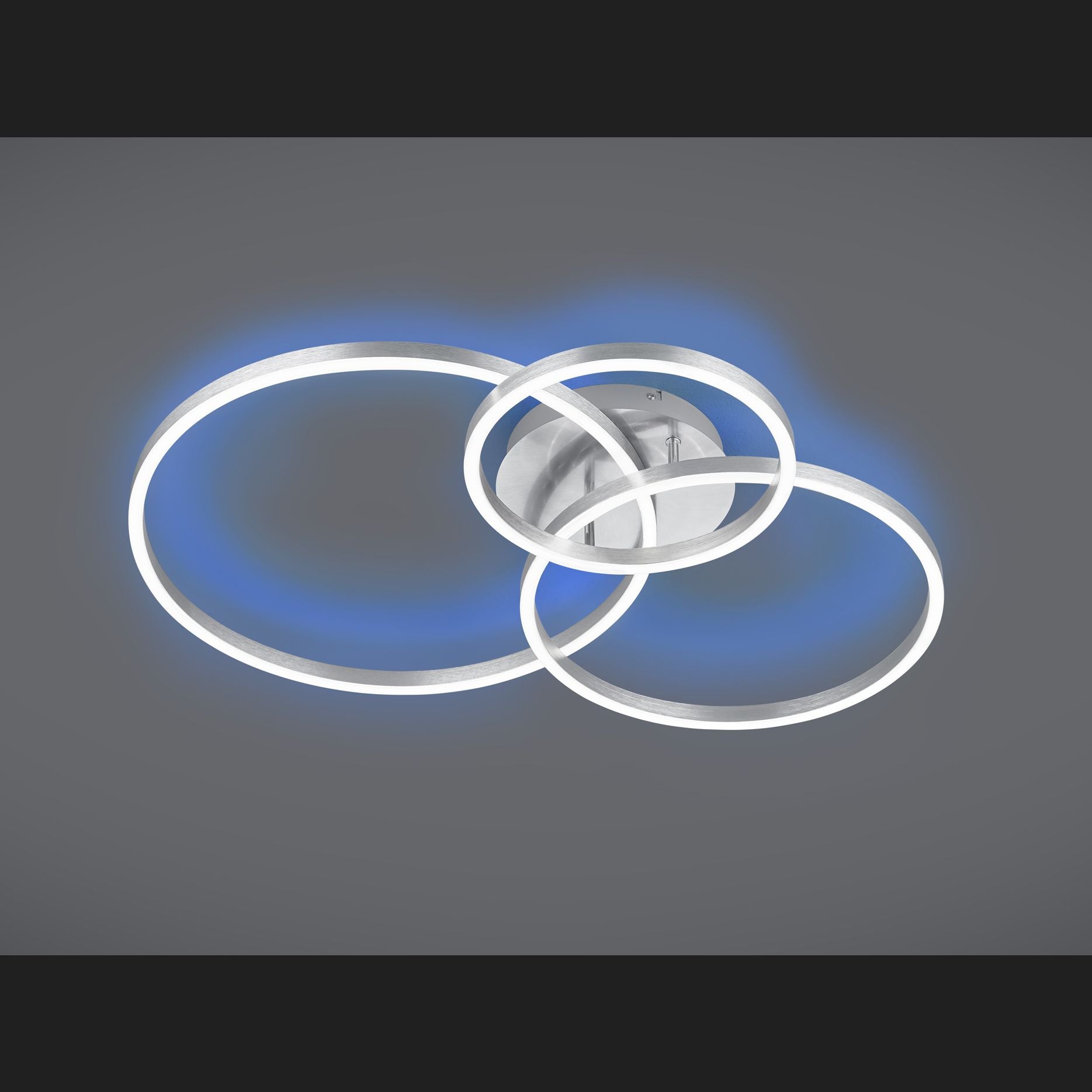 WINONA creates the right light for every mood and situation. The differently aligned light elements can be swivelled and their brightness and light colour can be adjusted as desired. In addition, the separately switchable indirect lighting in RGB colours provides a pleasant lighting ambience. All settings can be conveniently controlled via a remote control. Due to the modern colouring in nickel matt, the luminaire can be easily combined with existing furniture. In addition, the luminaire features modern LED technology, which is characterised by high light quality and energy efficiency. Compared to conventional halogen lamps, up to 80% of energy costs can be saved. In addition, LED light sources have a long service life, produce less heat and protect the environment.