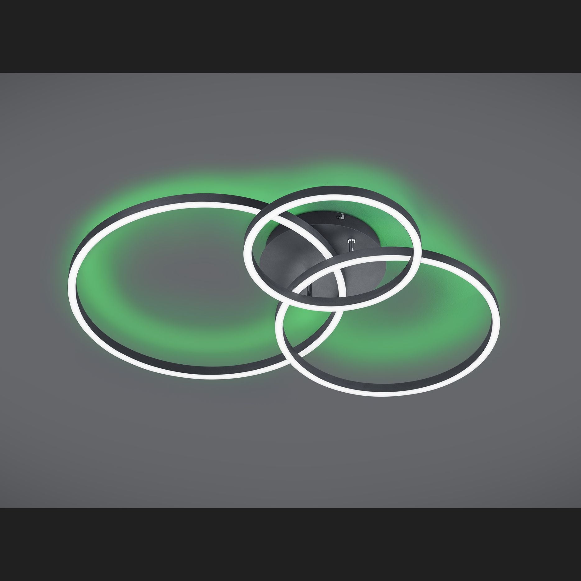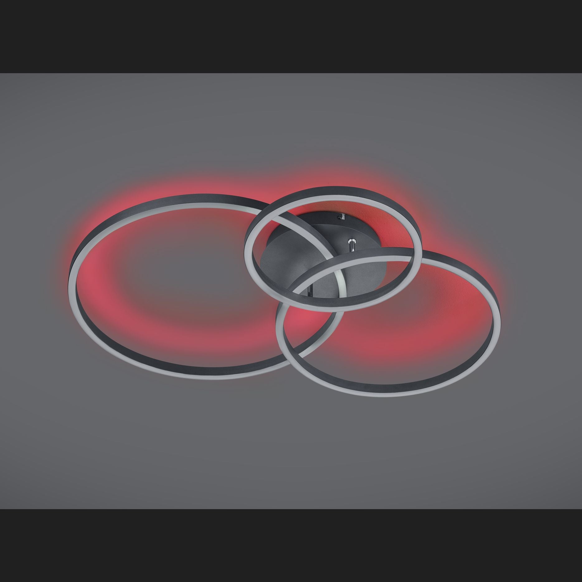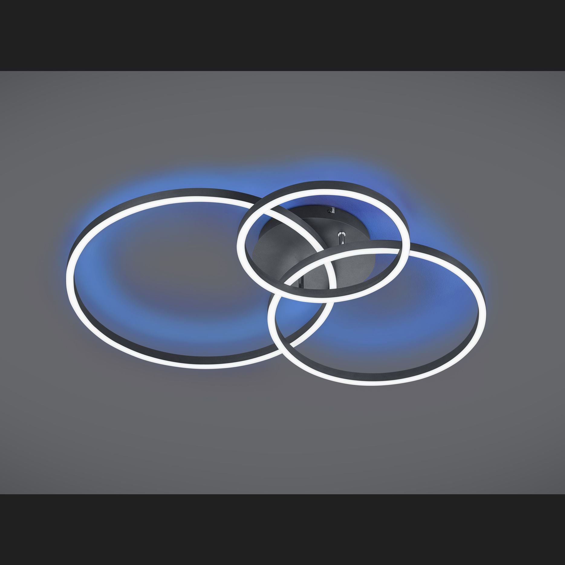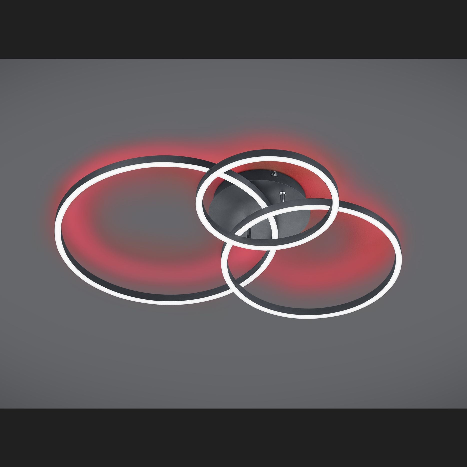 WINONA creates the right light for every mood and situation. The differently aligned light elements can be swivelled and their brightness and light colour can be adjusted as desired. In addition, the separately switchable indirect lighting in RGB colours provides a pleasant lighting ambience. All settings can be conveniently controlled via a remote control. Due to the modern colouring in matt black, the luminaire can be easily combined with existing furniture. In addition, the luminaire features modern LED technology, which is characterised by high light quality and energy efficiency. Compared to conventional halogen lamps, up to 80% of energy costs can be saved. In addition, LED light sources have a long service life, produce less heat and protect the environment.