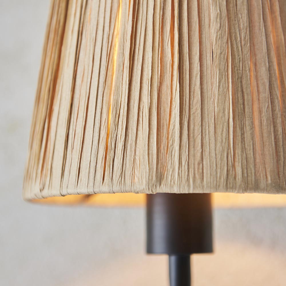 A modern take on country luxe design, this wall light is perfect for placing either side of your bed or as an addition to your lounge space. Featuring a wrapped natural raffia shade, that perfectly diffuses the light, with metalwork finished in matt black for that 'wrought' iron look.