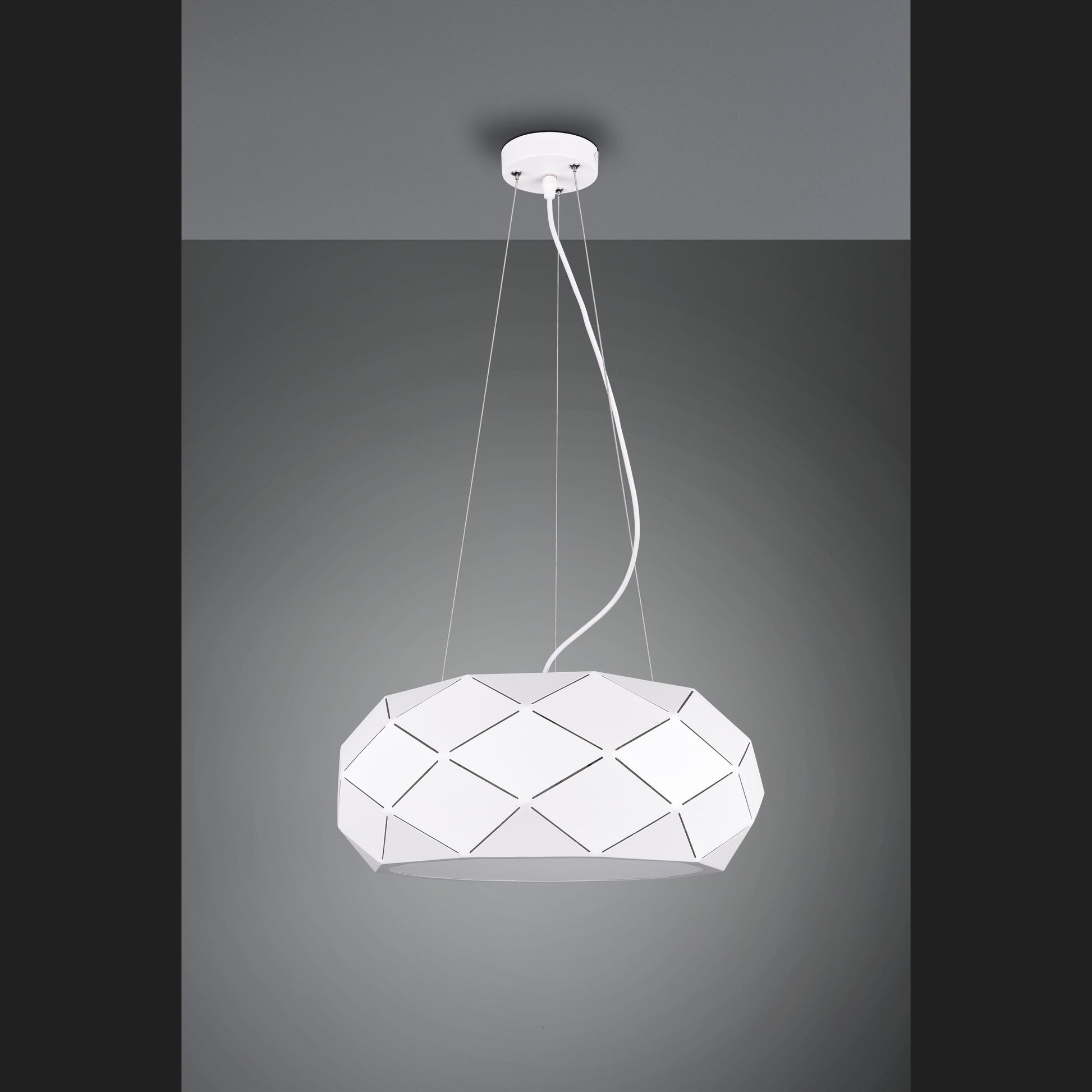The modern ZANDOR pendant light is a real eye-catcher in any living room. Most of the light escapes upwards and downwards. The pretty pattern of the luminaire also allows some light to escape here. The ZANDOR wall lamp is therefore particularly suitable for additional or accent lighting, as the focus is naturally not on bright illumination but on an atmospheric effect. It has a diameter of 50 cm and a height of 18/150 cm. The luminaire is made of matt white metal. In addition, the luminaire features modern LED technology, which is characterised by high light quality and energy efficiency. Compared to conventional halogen lamps, up to 80% of energy costs can be saved. In addition, LED light sources have a long service life, produce less heat and protect the environment.