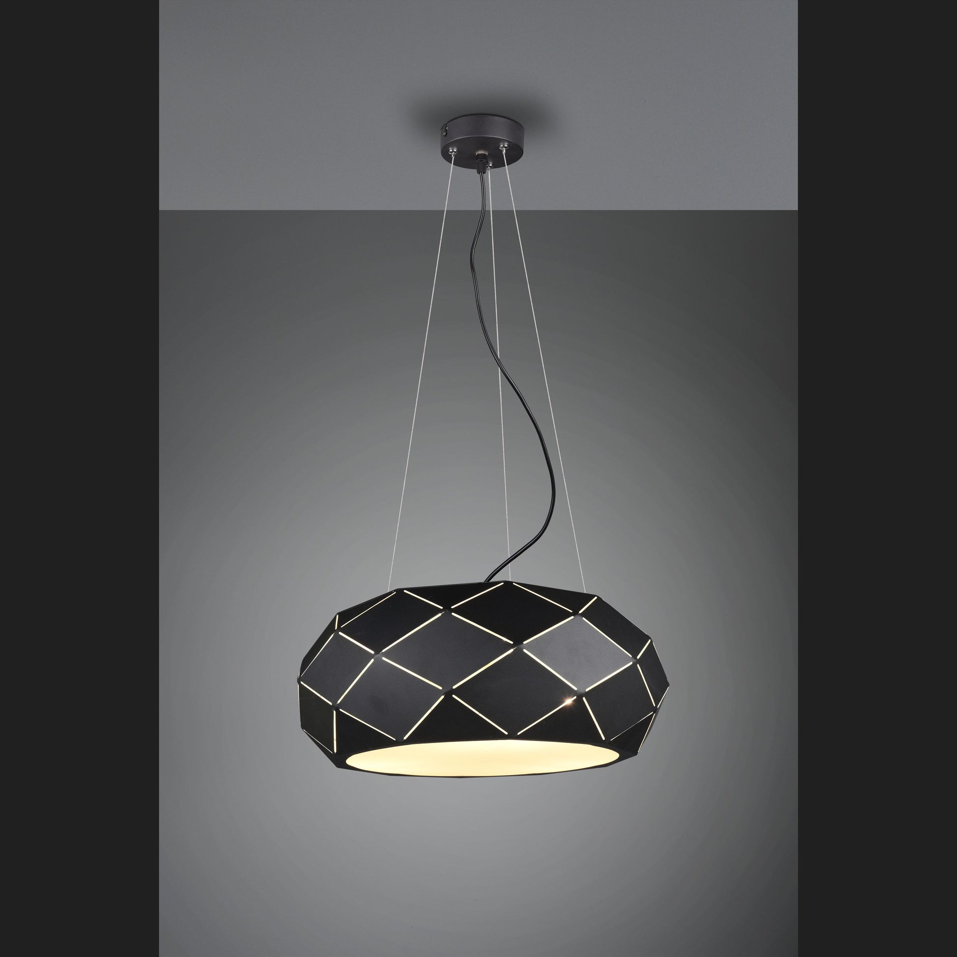 The modern ZANDOR pendant light is a real eye-catcher in any living room. Most of the light escapes upwards and downwards. The pretty pattern of the luminaire also allows some light to escape here. The ZANDOR wall lamp is therefore particularly suitable for additional or accent lighting, as the focus is naturally not on bright illumination but on an atmospheric effect. It has a diameter of 50 cm and a height of 18/150 cm. The light is made of matt black metal. In addition, the luminaire features modern LED technology, which is characterised by high light quality and energy efficiency. Compared to conventional halogen lamps, up to 80% of energy costs can be saved. In addition, LED light sources have a long service life, produce less heat and protect the environment.