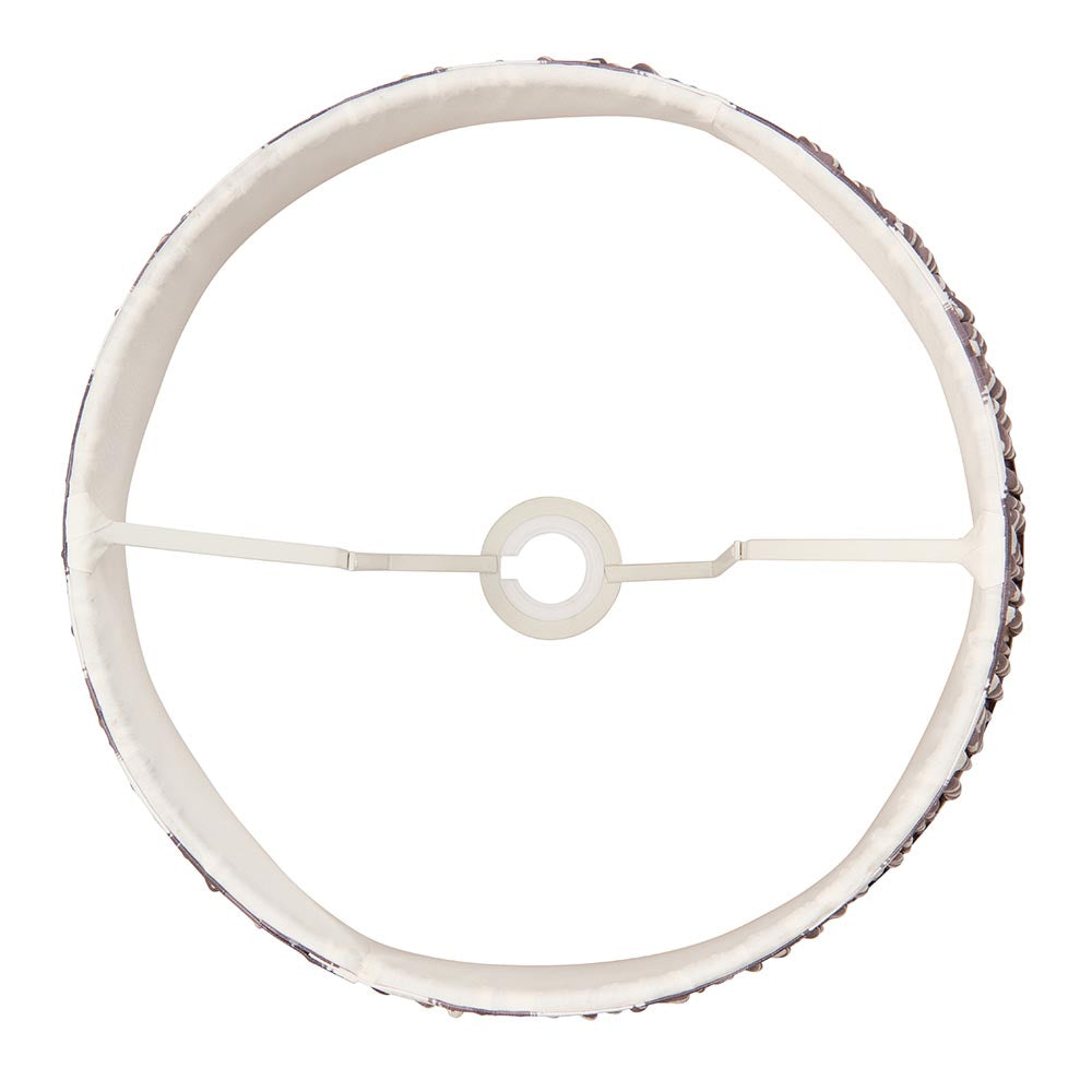 40cm tapered shade with reversible white gimbal. Zigzag pattern in pearl grey colour with taped edge detailing and plain inner lining. Perfect when paired with one of our beautifully decorative floor lights and cable sets.