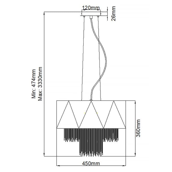 - Product Dimensions: H: 360mm D: 450mm Min/Max Drop: 474mm - 3330mm
